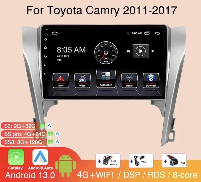 จอ android ตรงรุ่นใส่ซิม Apple Carplay Android Auto สำหรับ Toyota Camry
